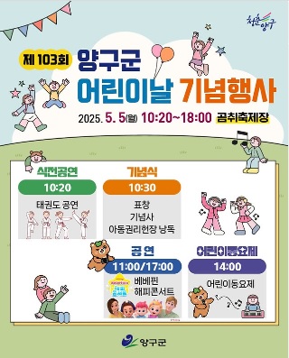 2025년 5월 5일 어린이날을 맞아 강원도 전역에서는 다양한 축제와 행사가 개최됩니다. 춘천, 원주, 양구, 강릉 등지에서 가족이 함께 즐길 수 있는 체험 행사와 공연, 전시 등이 무료로 펼쳐질 예정입니다. 아래 지역별 행사 정보를 꼼꼼히 확인하시고 우리 아이에게 특별한 하루를 선물해보세요!